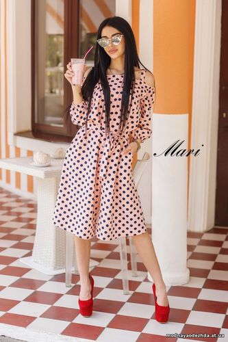| Платье с открытыми плечиками свободного кроя. По всей длине пуговички , талия регулируется пояском, поэтому отлично садится на фигуру от 42 до 46 размера . Ткань креп костюмка Много расцветок: красный, горох и цветочный принт | |